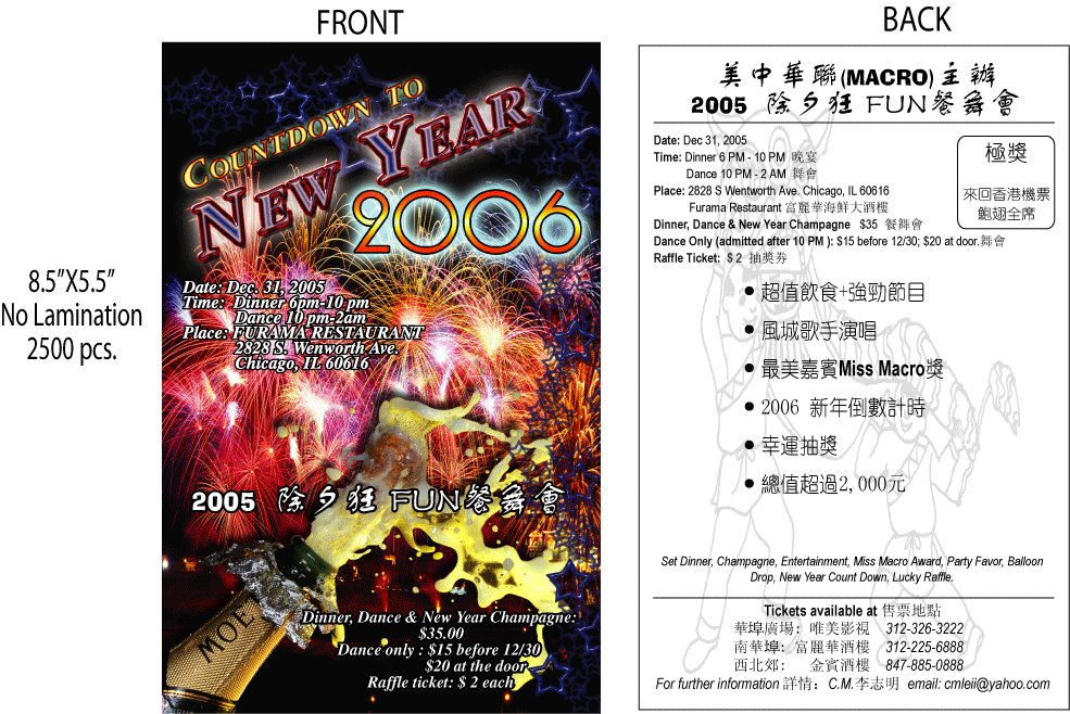 美中華聯决定秉承年舉辦大型晚會的經驗,今年再接再勵,再度籌辦二○○五年之除夕狂FUN飱舞會。
